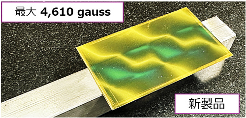 新製品はピーク値の最大磁束密度(Gauss)は低いですが、従来品に比べ色が変わっている面積が広いことが分かります。