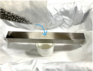 鉄球φ4.5(SUJ2、総重量177 g)を上方から流し込み吸着重量を測定 |